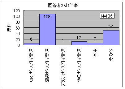 (社)電子情報技術産業協会(JEITA)の液晶産業研究専門委員会・人間工学プロジェクトに調査の協力を依頼したために液晶ディスプレイ関連に従事されている回答者が半数以上を占めた. |